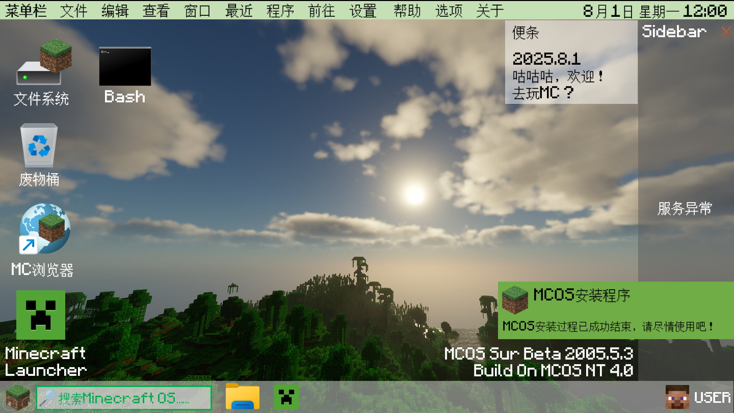 MCOS(Minecraft OS) Sur Beta Build 2005