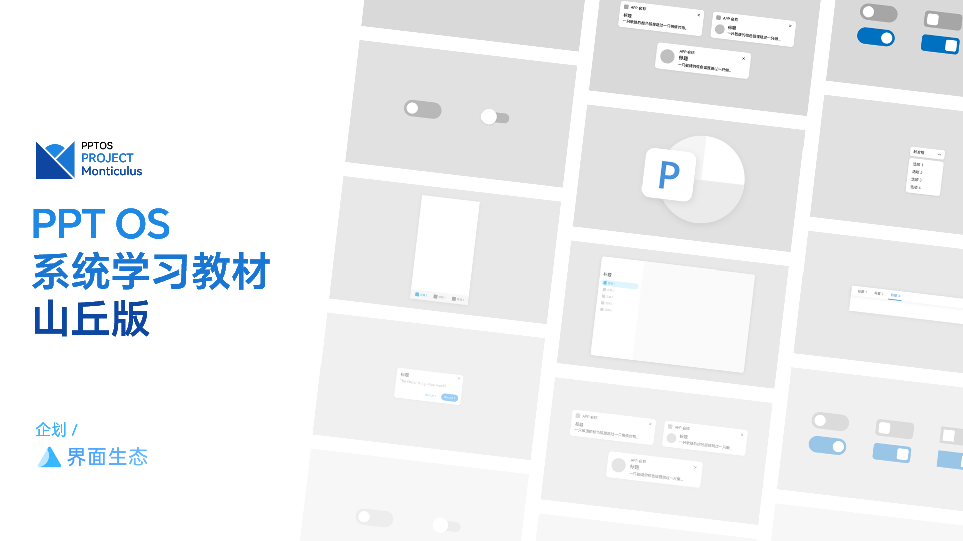 PPTOS 山丘企划,由界面生态成员 「 @LenkMat_临空牧野 」 与 「 @戌犬朱狼_Lipus 」 共同发起。我们致力于探索 PowerPoint 等演示软件在界面设计与交互原型方面的巨大潜力,并向世界展示 PPT 被忽略的无限可能。