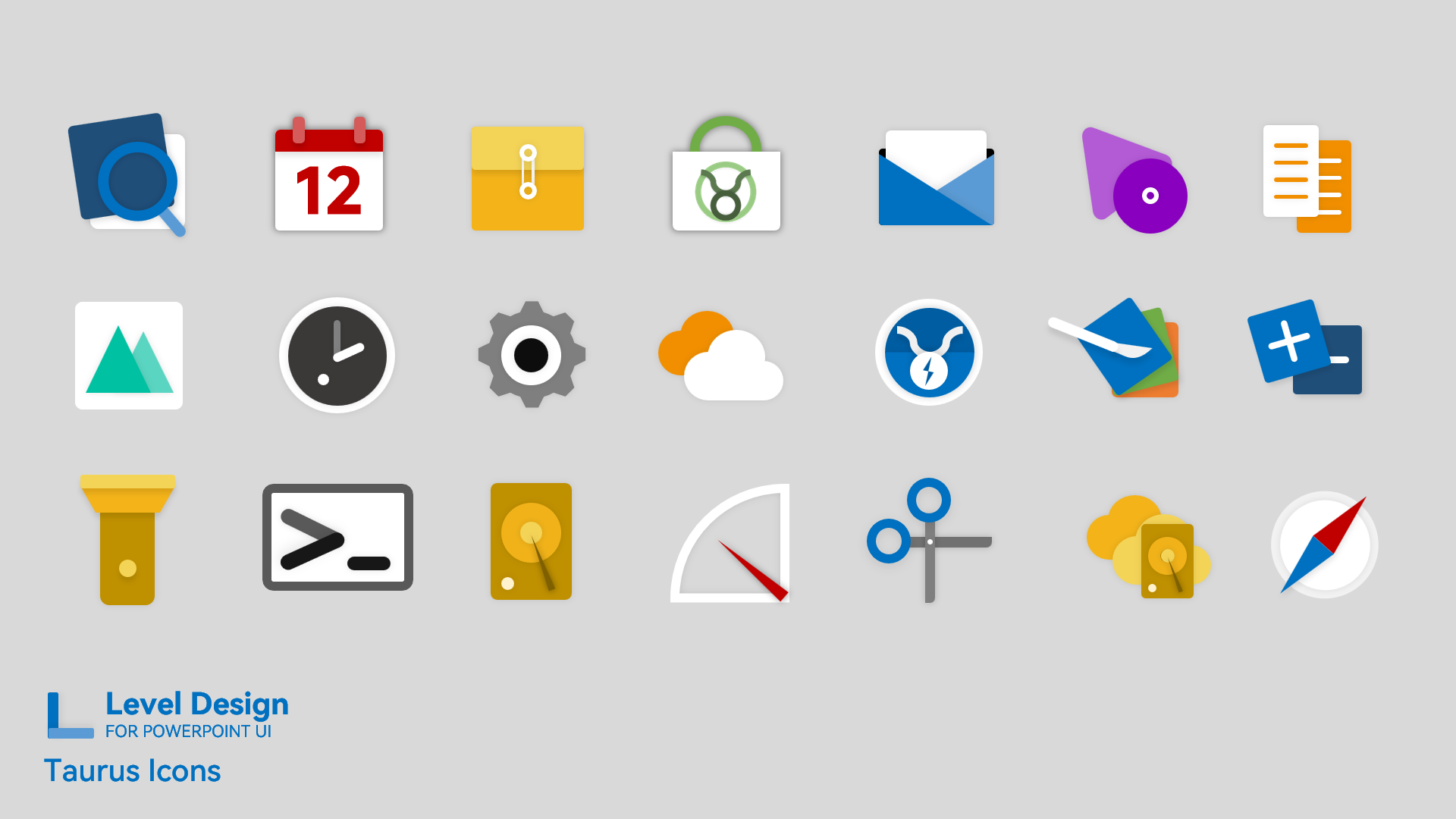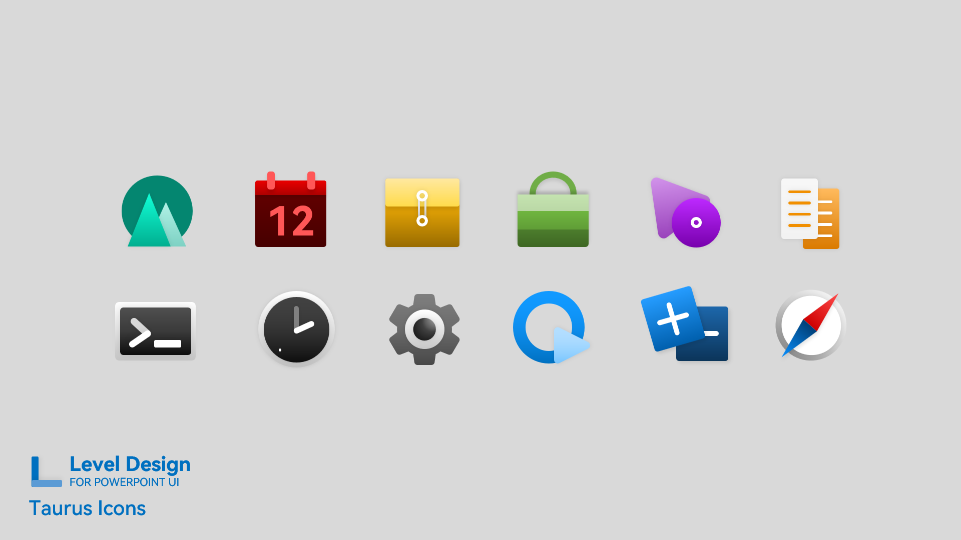 Taurus UI 系列作品内置应用的图标集,可在遵循 CC BY-SA 4.0 开源协议的前提下二次魔改。