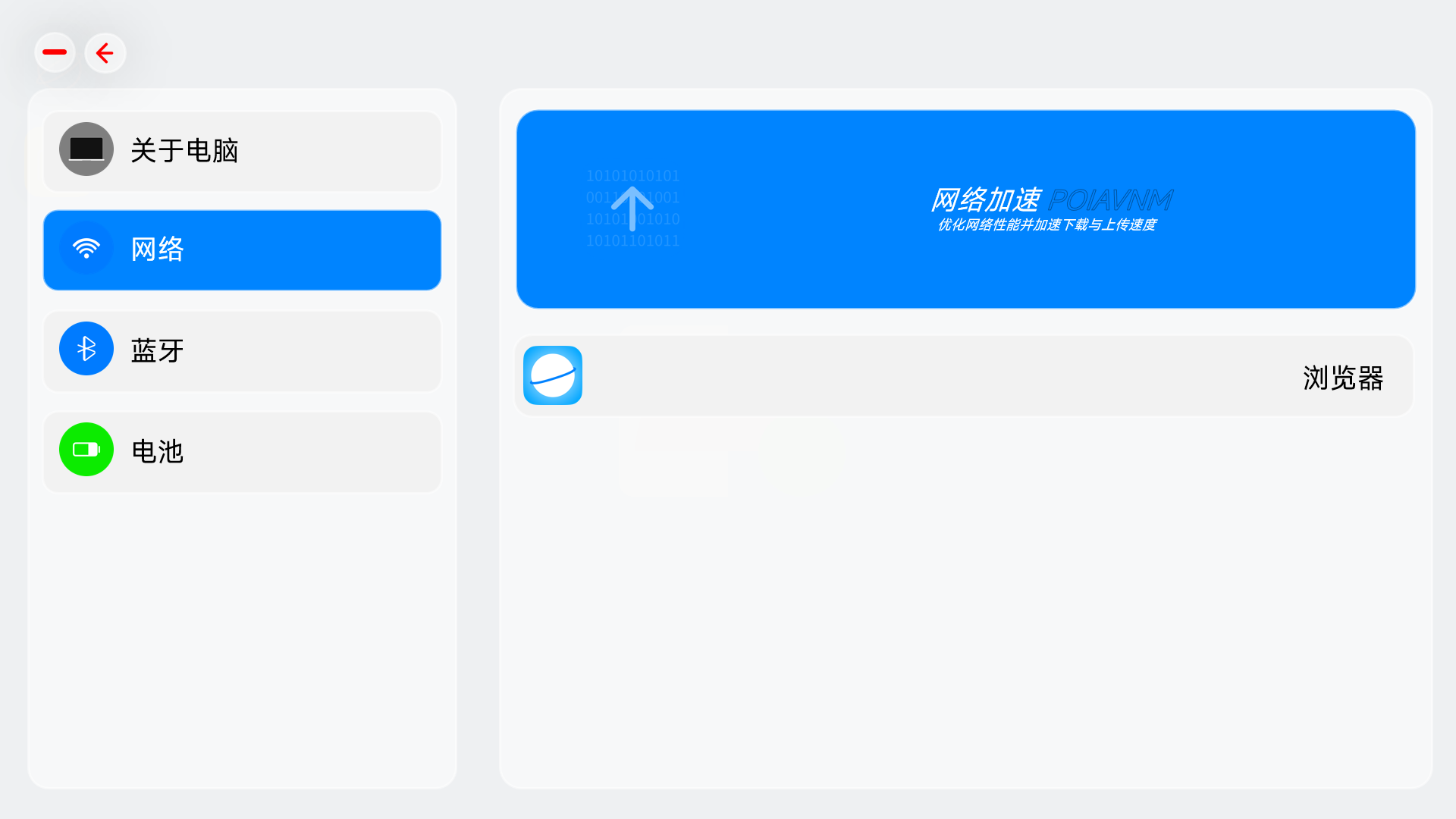 功能新增:添 VPN 配置(支持流量计费 / 漫游连接)、“网络加速 POIAVNM”(优化传速);