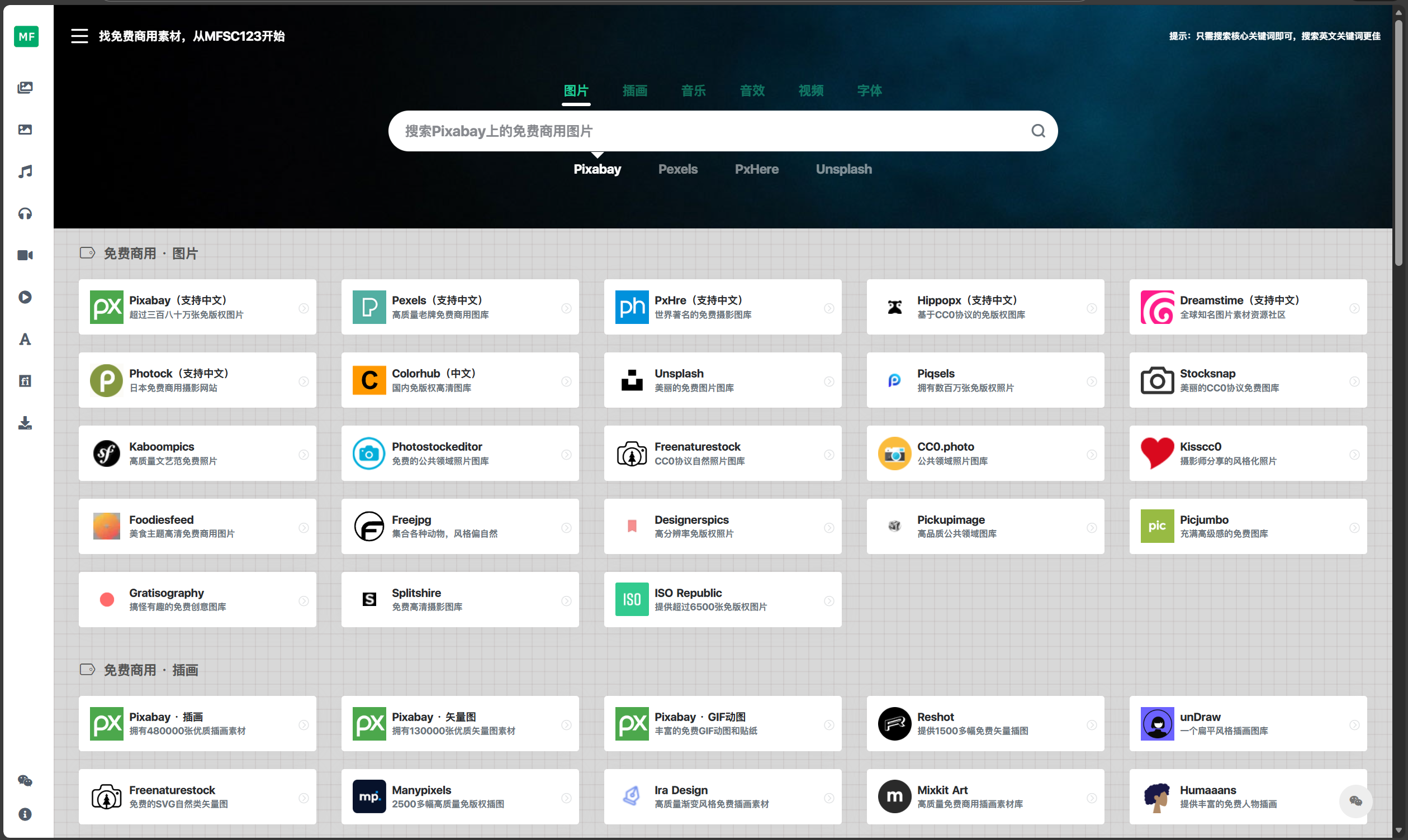 LenkMat_临空牧野 一、MFSC123.COM - 找免费商用素材从这里开始 非常好用,尤其是字体 二、DOYOUDO 比较杂,毕竟也不是专门的资源网站 持续更新ing……(实则是没了)欢迎各位补充~