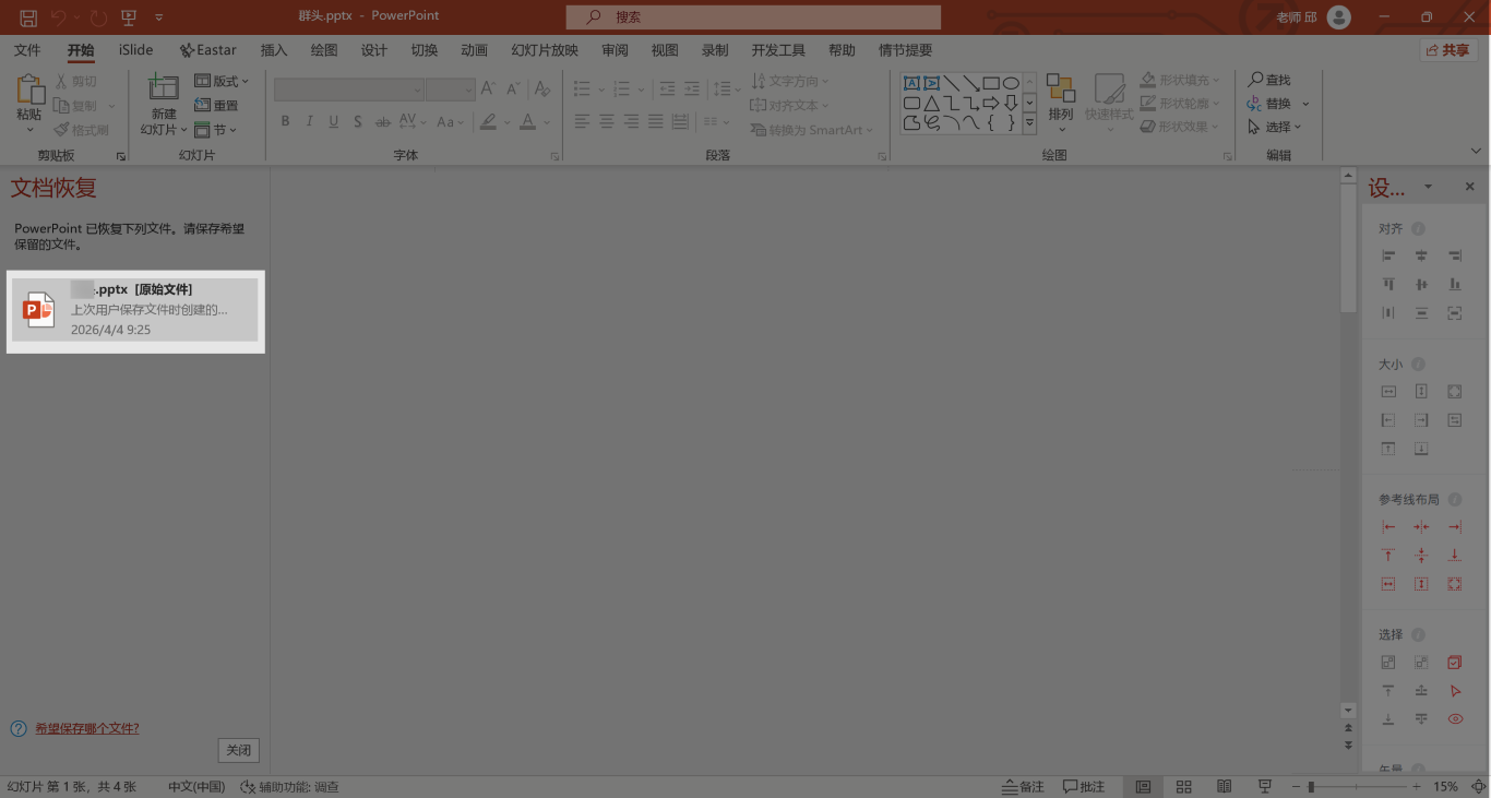 一般情况下,软件崩溃后重新打开 PowerPoint,会自动显示崩溃前的自动存档。