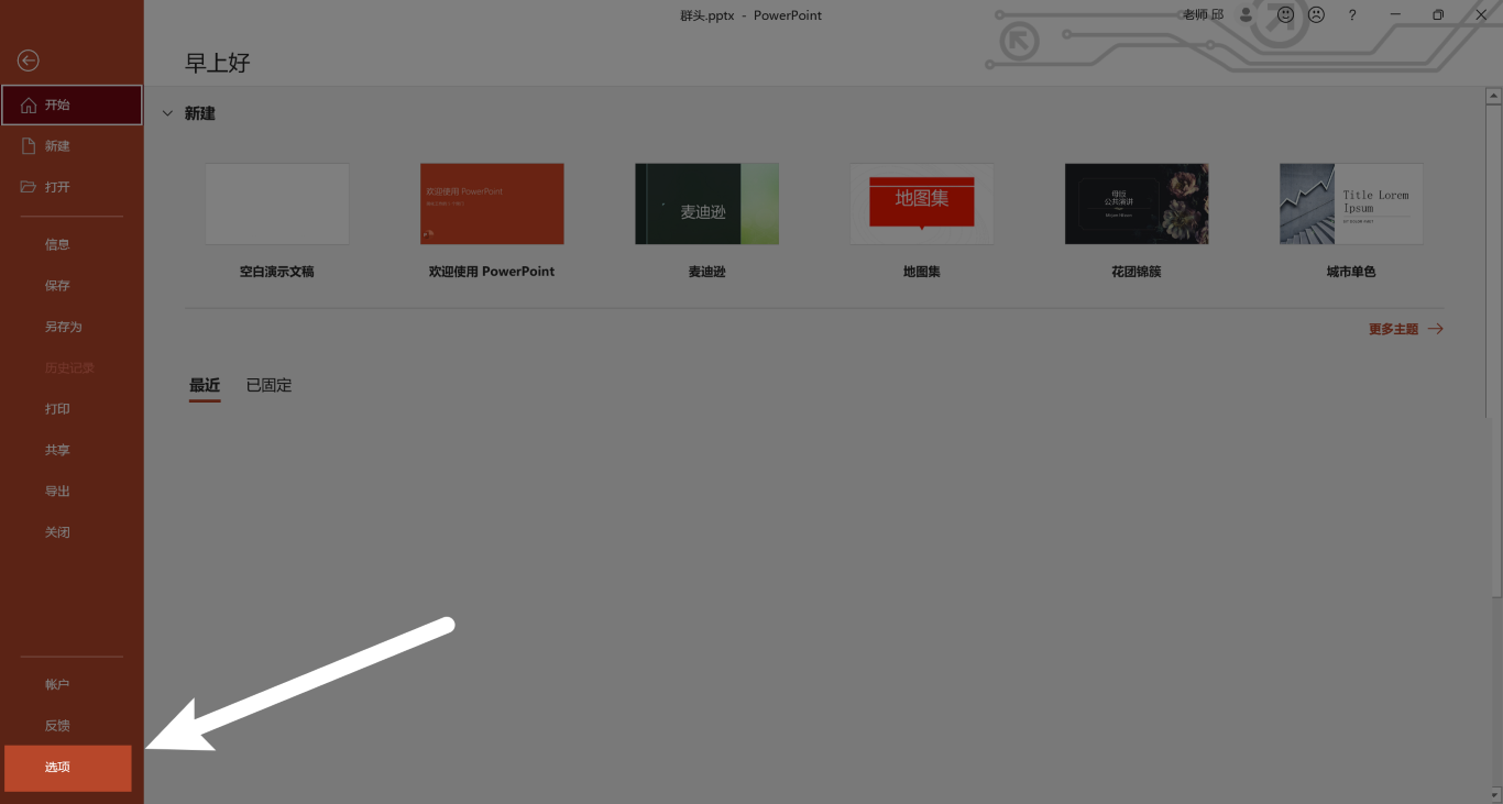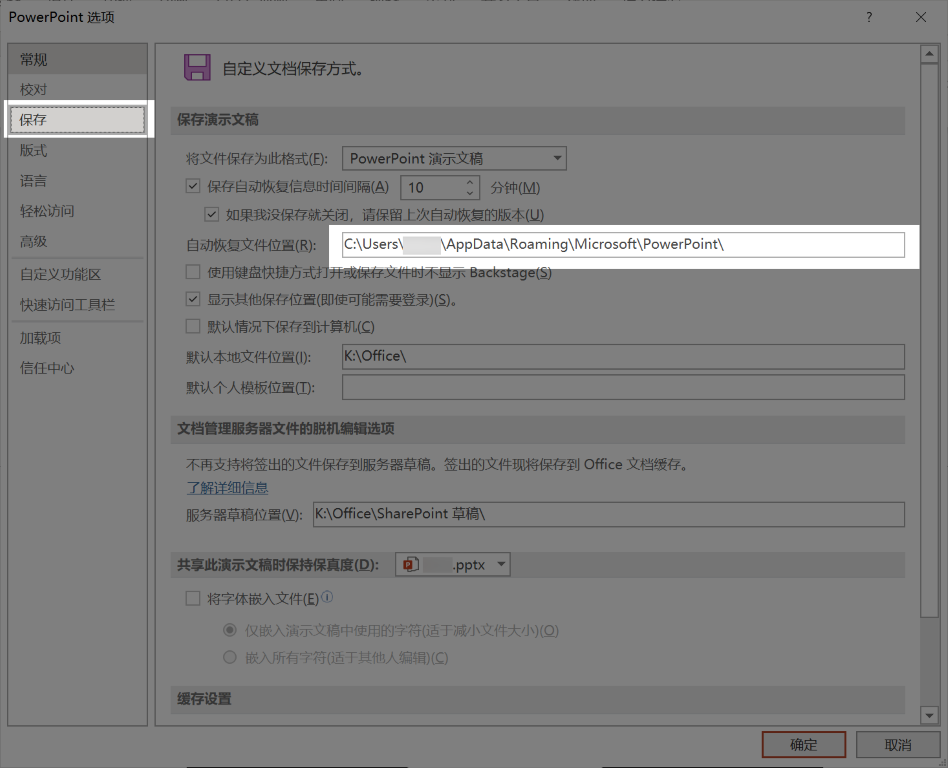 然后在弹出的选项窗口中查看 PowerPoint 自动保存的位置(与 OneDrive 自动保存无关,不需要手动打开)。